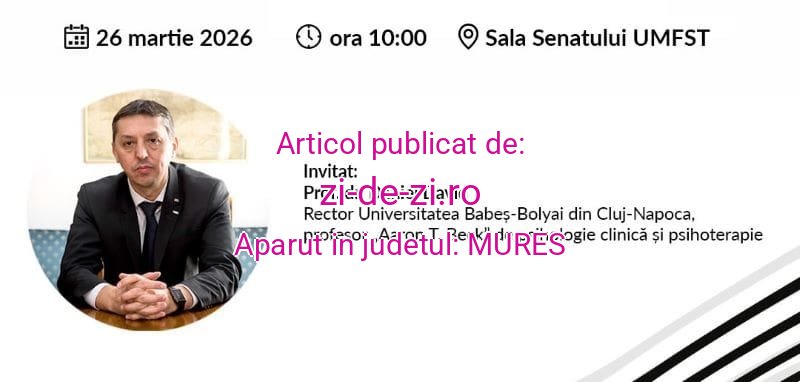 Universitatea de Medicină, Farmacie, Științe și Tehnologie (UMFST) ”George Emil Palade” Târgu Mureș anunță organizarea, în data de 26 martie 2026, a prelegerii publice „Psihoterapia și psihologia bazată pe dovezi: integrarea științei în practica clinică”.