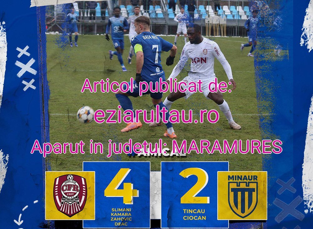 „Un test util pentru băieții noștri în compania unei echipe puternice. A fost rulat întreg lotul avut la dispoziție”, spun oficialiiCS Minaur Baia Mare după amicalul disputat azi în deplasare de echipa de Liga 3 cu CFR Cluj. Meci încheiat cu victoria gazdelor cu 4-2 (3-1). Marcatori: Slimani, Kamara, Zahovic, Deac, respectiv Tincău și Ciocan. A fost a cincea partidă de pregătire jucată de CS Minaur în 2026.