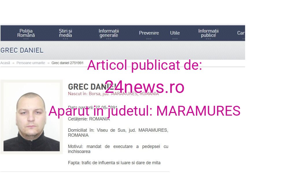 Pe site-ul Poliției Române sunt zeci de persoane căutate de autorități și care sunt de negăsit pentru a-și executa pedeapsa privativă de libertate. Printre ei și mai mulți borșeni, care au fost condamnați de instanța de judecată la ani de închisoare pentru comiterea unor infracțiuni. Printre ei sunt Grec Daniel, Grec Ionel și Grec Marius.